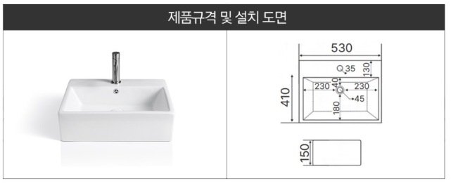 세면대 뒷면에 벽에 고정할 수 있는 앙카 볼트 홈이 있어