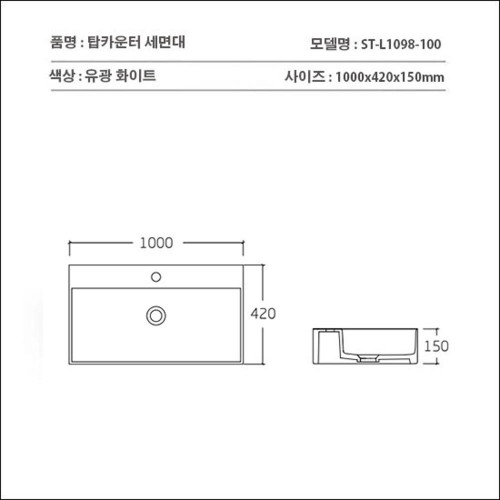 ST-L1098-100 대형 특대형 초대형 직사각 탑볼 탑카운터 세면대 세면기