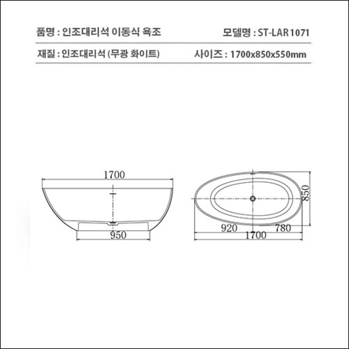 ST-BW1071 조개모양 인조대리석 레진 액상아크릴 이동형 이동식 프리스탠딩 욕조