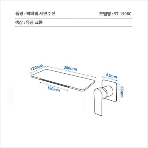 ST-1508C 유광 크롬 실버 벽매립 매립형 폭포 세면대 세면기 수전 수도꼭지