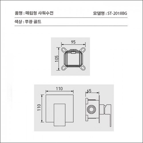 ST-2018BG 사각 무광 골드 벽매립형 매립식 샤워기 샤워수전 설치 이해도
