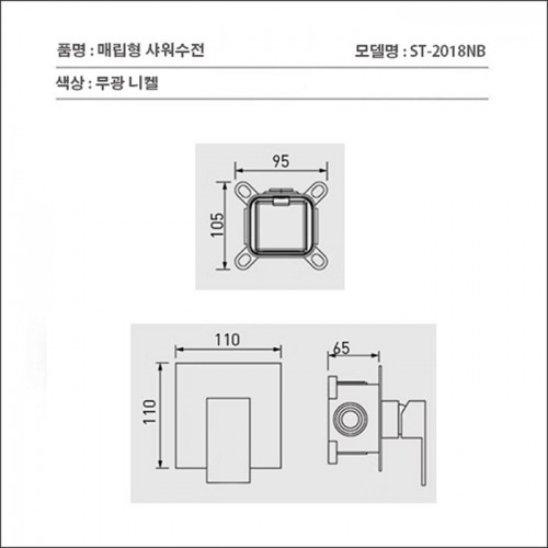 ST-2018NB 사각 무광 니켈 벽매립형 매립식 샤워기 샤워수전 설치 이해도