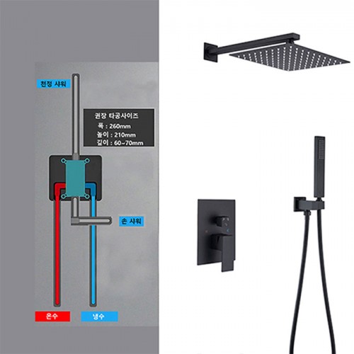 ST-2048B 사각 무광 블랙 벽매립형 매립식 샤워기 샤워수전 매립박스 시공