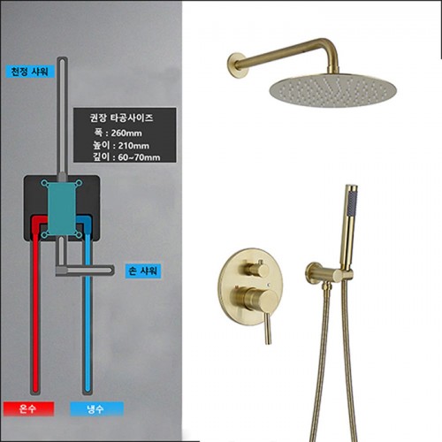 ST-1048BG 무광 골드 금색 금장 벽매립형 매립식 샤워기 샤워수전 매립박스 시공