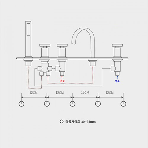 ST-05011NB 무광 니켈 5홀 대붙이 데크형 욕조 샤워 수도꼭지 수전