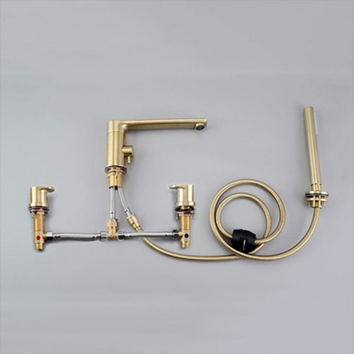 ST-04010BG 무광 골드 금색 금장 4홀 대붙이 데크형 폭포 욕조 샤워 수전 수도꼭지 설치 이해도