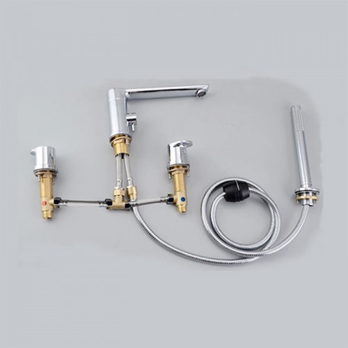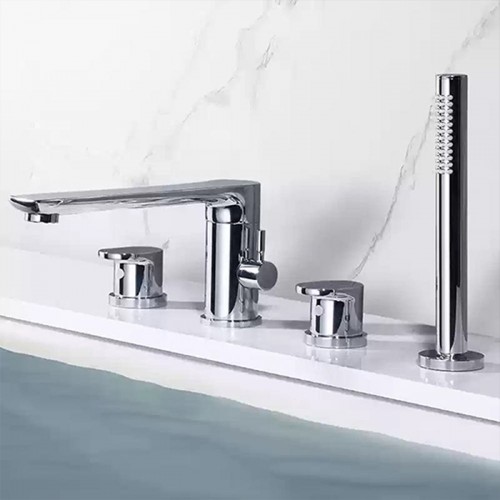 ST-04010C 유광 크롬 4홀 대붙이 데크형 폭포 욕조 샤워 수전 수도꼭지