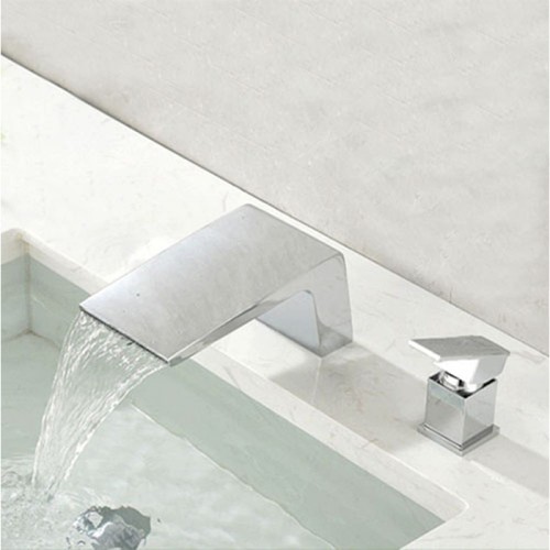 ST-02855C 유광 크롬 2홀 대붙이 데크형 폭포 욕조수전
