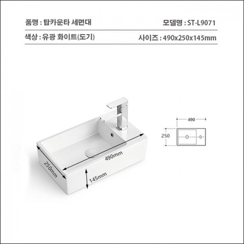 ST-L9071 사각 소형 작은 미니 탑볼 탑카운터 탑카운타 모던 심플한 세면대 세면기