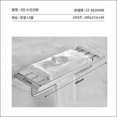 ST-A8200NB 무광 니켈 304SUS 스텐 욕실 화장실 2중 2단 수건선반