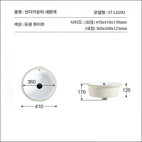 ST-L020U 원형 언더볼 언더카운타 매립 세면대 세면기 요약정보 및 구매