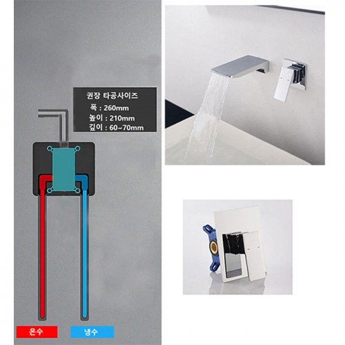 ST-1503C 유광 크롬 벽매립 매립형 폭포 세면대 세면기 수전 수도꼭지