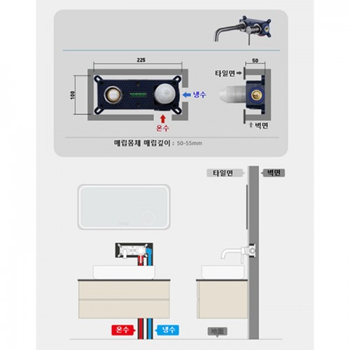 ST-1501BG 무광 골드 벽매립 매립형 세면대 세면기 수전 수도꼭지