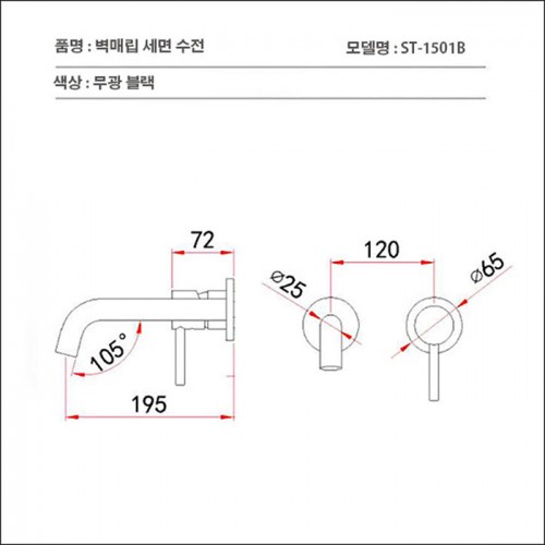ST-1501B 무광 블랙 벽매립 매립형 세면대 세면기 수전 수도꼭지