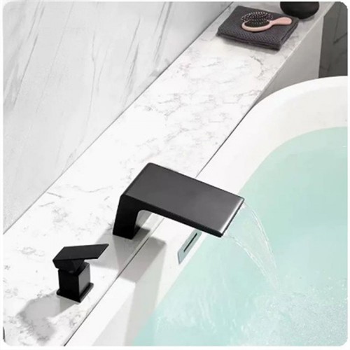 ST-02855B 무광 블랙 2홀 대붙이 데크형 폭포 욕조수전