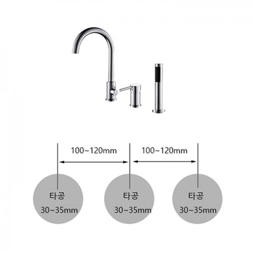 ST-03050NB 니켈 무광 스텐 3홀 데크형 욕조 샤워 수도꼭지 수전