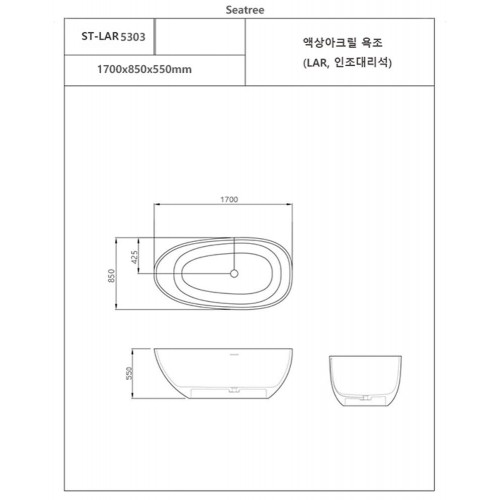 ST-LAR5303 1700x850x550 무광 블랙 인조대리석 액상아크릴 레진 LAR 이동식 욕조