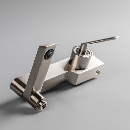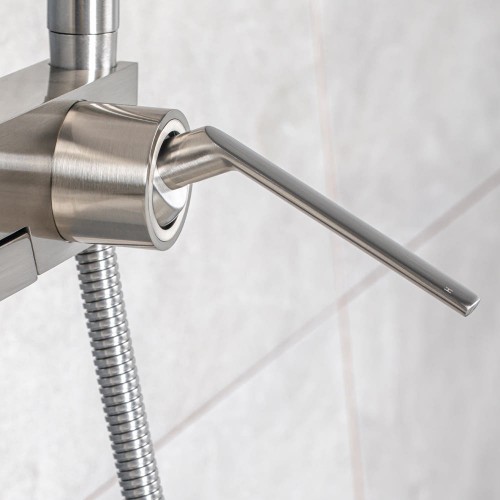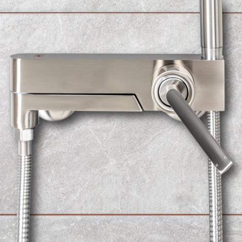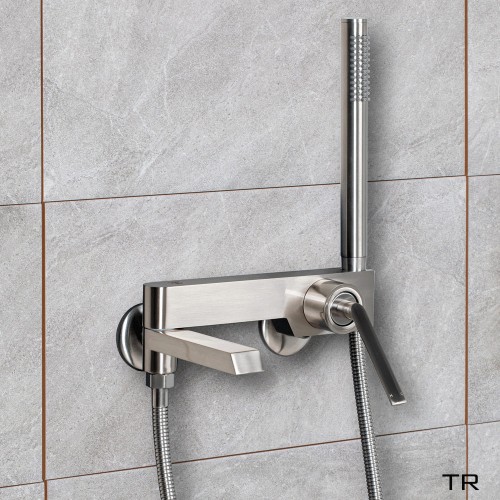 심플한 디자인에 매트한 니켈 컬러의 샤워 욕조 수전,