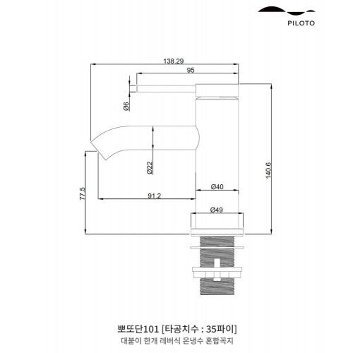 • 필로토 뚜뚜 201 카키 원홀, 주방수전 겸용