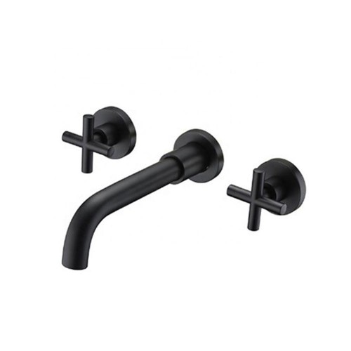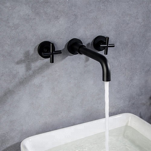 ST-1505B 무광 블랙 십자투핸들 벽매립 매립형 폭포 세면대 세면기 수전 수도꼭지