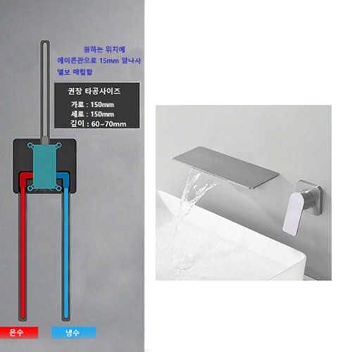 ST-1508C 유광 크롬 실버 벽매립 매립형 폭포 세면대 세면기 수전 수도꼭지