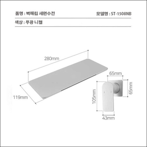 ST-1508NB 무광 니켈 벽매립 매립형 폭포 세면대 세면기 수전 수도꼭지