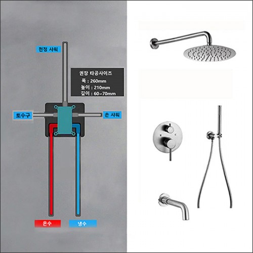 ST-1048-3NB 3기능 무광 니켈 벽매립형 매립식 레인 욕조 샤워 수전