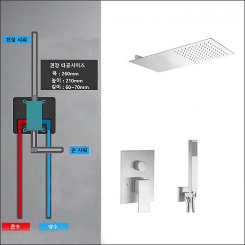 ST-2088NB 무광 니켈 벽매립형 매립식 폭포 레인 욕조수전 샤워수전 설치 이해도