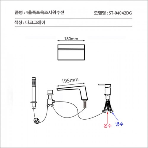ST-04042DG 다크그레이 메탈그레이 4홀 폭포 욕조 샤워 수전