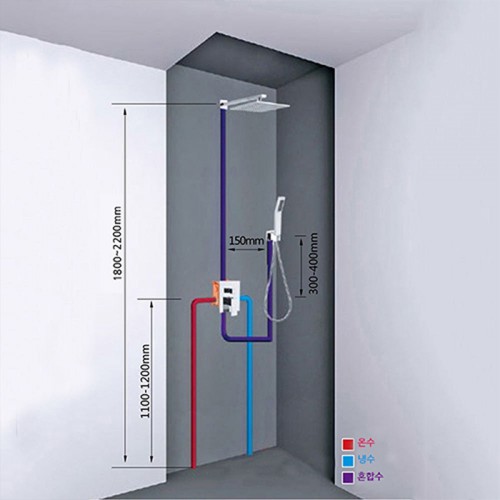 ST-2048B 사각 무광 블랙 벽매립형 매립식 샤워기 샤워수전 시공 이해도