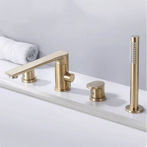 ST-04010BG 무광 골드 금색 금장 4홀 대붙이 데크형 폭포 욕조 샤워 수전 수도꼭지