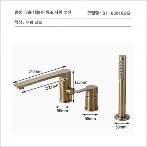 ST-03010BG 무광 골드 금색 금장 3홀 대붙이 데크형 욕조 샤워 수도꼭지 수전