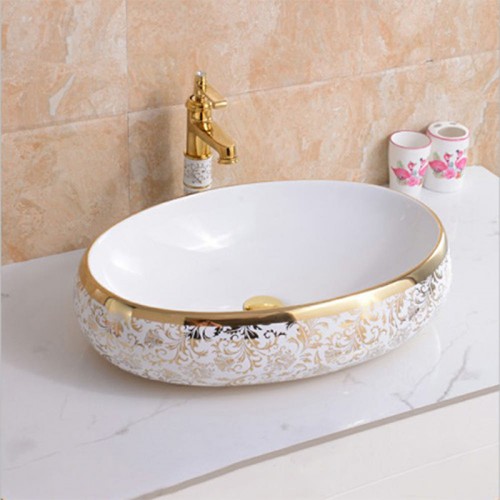ST-L373A 타원 도자기 수제 금장 탑카운터 탑카운타 모던 심플한 세면대 세면기