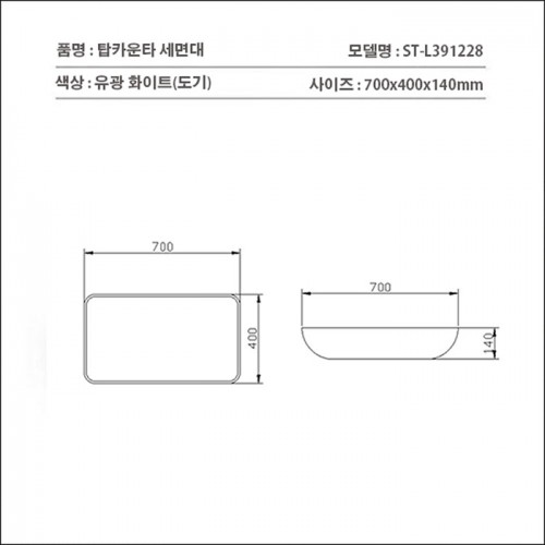 • ST-L391228 대형 사각 모던 고급 심플한 탑볼 탑카운타 세면대 세면기