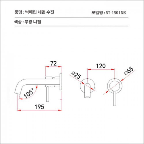 ST-1501NB 무광 니켈 벽매립 매립형 세면대 세면기 수전 수도꼭지