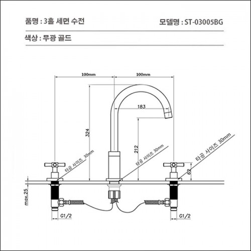 ST-03005BG 무광 골드 금색 금장 3홀 세면대 세면기 수전 수도꼭지