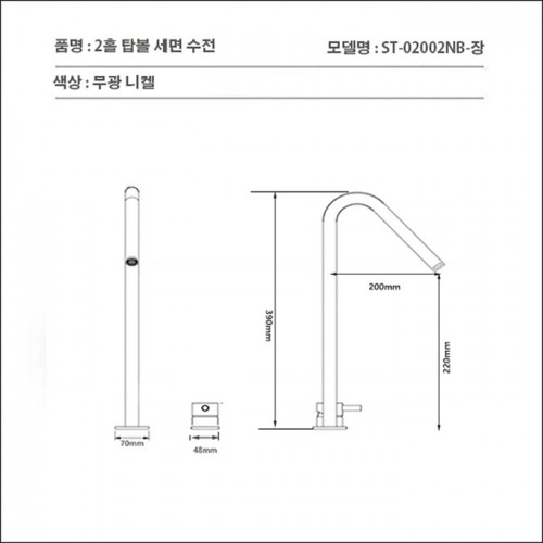 ST-02002NB-장 무광 니켈 스텐 2홀 탑볼 세면대 세면기 수전 수도꼭지