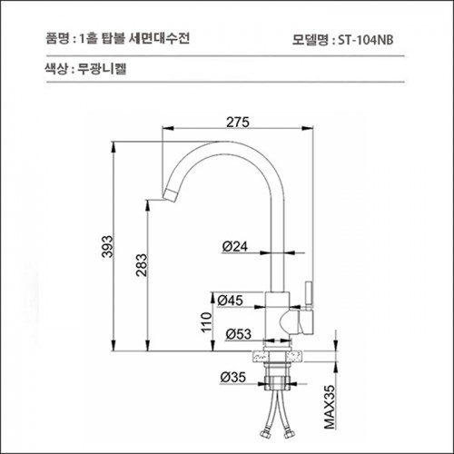 ST-104B 무광 블랙 검정 거위목 탑볼용 세면대 세면기 수전 수도꼭지