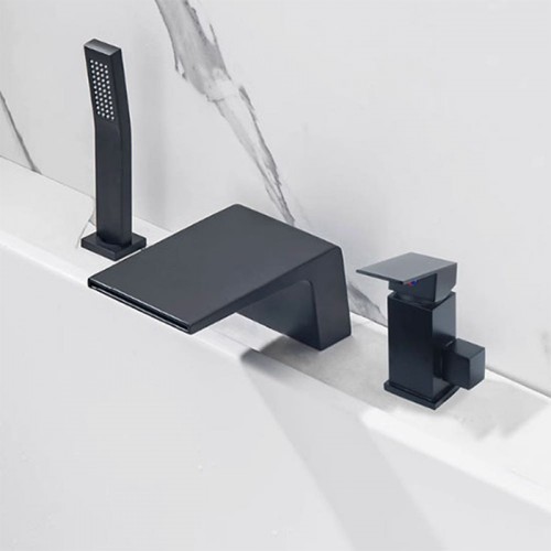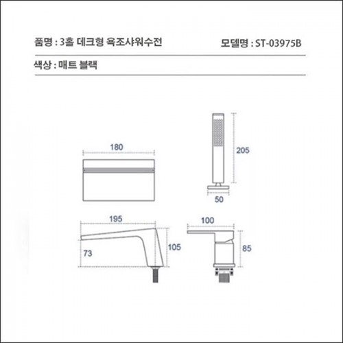 ST-03975B 매트 무광 블랙 대붙이 데크형 3홀 욕조 샤워 수전 수도꼭지