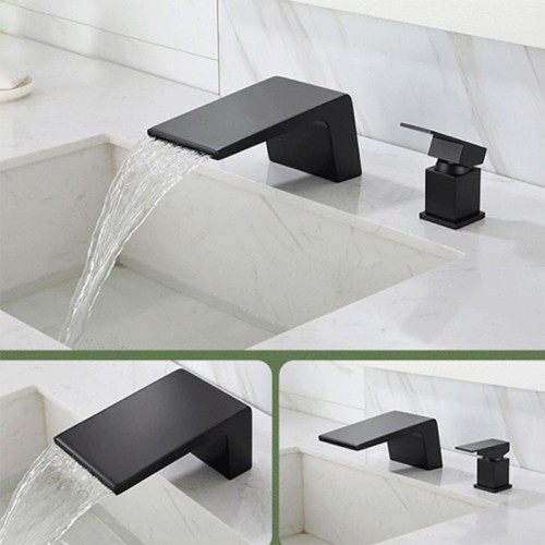 ST-02855B 무광 블랙 2홀 대붙이 데크형 폭포 욕조수전