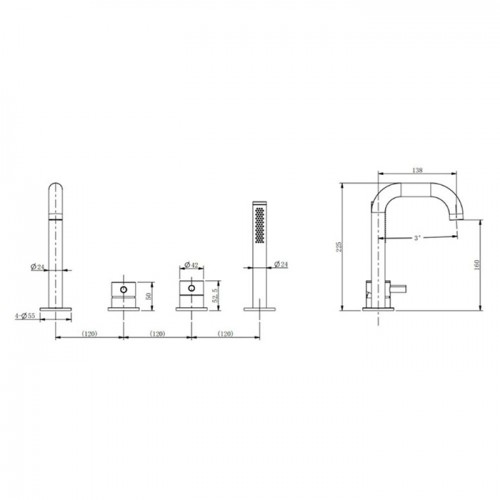 ST-Y8074N 니켈 무광 스텐 SUS304 4홀 데크형 욕조 샤워 수도꼭지 수전 제품 사이즈