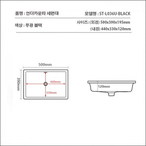 ST-L036U-BLACK 무광 블랙 언더볼 언더카운터 언더카운타 사각 세면대 세면기