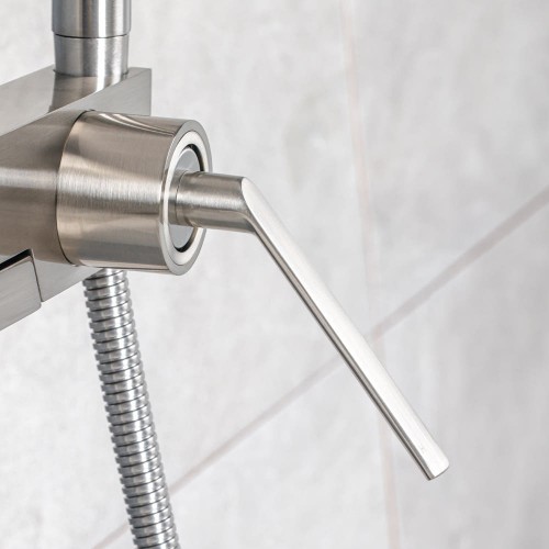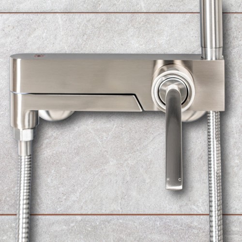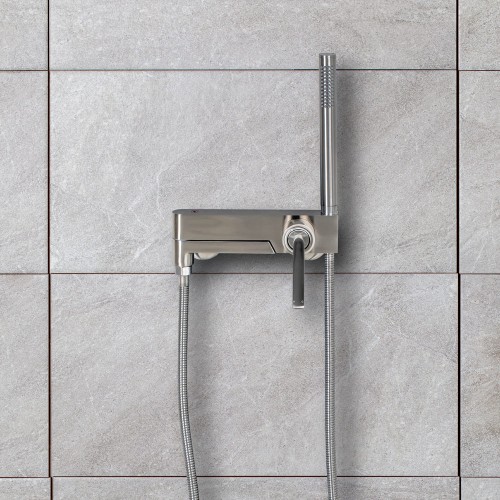심플한 디자인에 매트한 니켈 컬러의 샤워 욕조 수전,